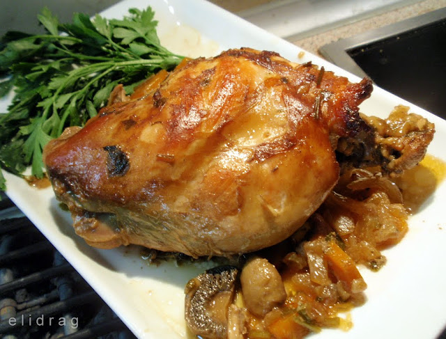 И тъй като не успях да реша в какъв вид ми харесва повече, приготвих две ястия по следния начин: Отделих предните и задни бутчета. Остана средната част с ребрата и филетата (така нареченият „кош”).